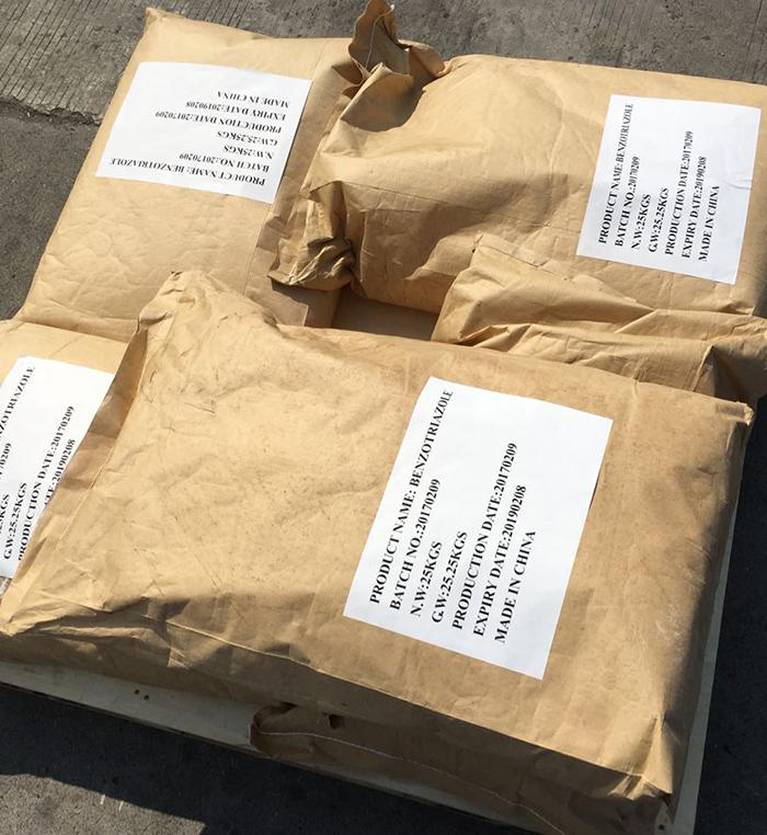 5. BTA is a good ultraviolet light absorber, which can stabilize the ultraviolet light sensitive products. BTA can prevent sheet products such as paper, knit, film and metal coins from discoloring. The BTA added to grinding oil and cutting oil can protect the copper pieces from discoloring in machine work.